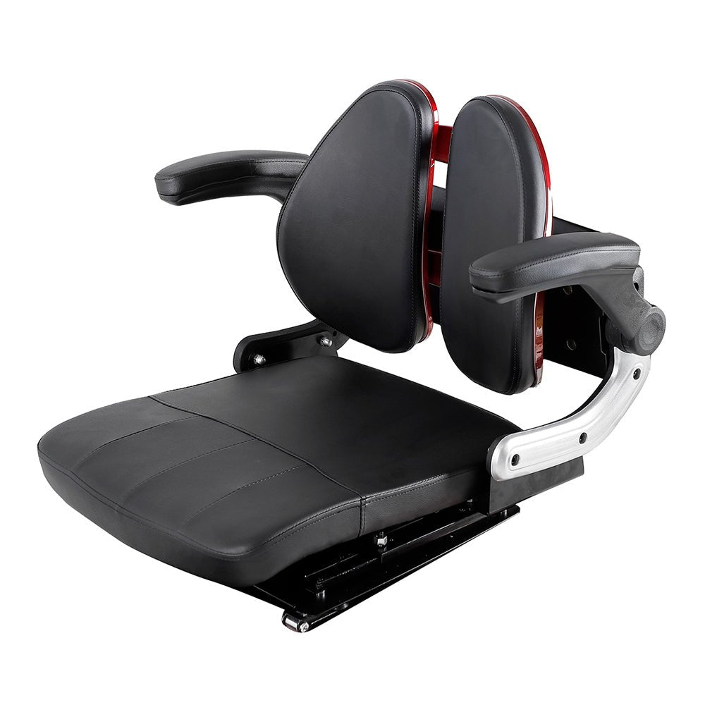 - The intuitive LED console with twist-throttle offers precise, legible speed, mileage, and battery info; Paired with a non-slip deck and adjustable-height seat/armrests, this scooter ensures safety and comfort for all riders.